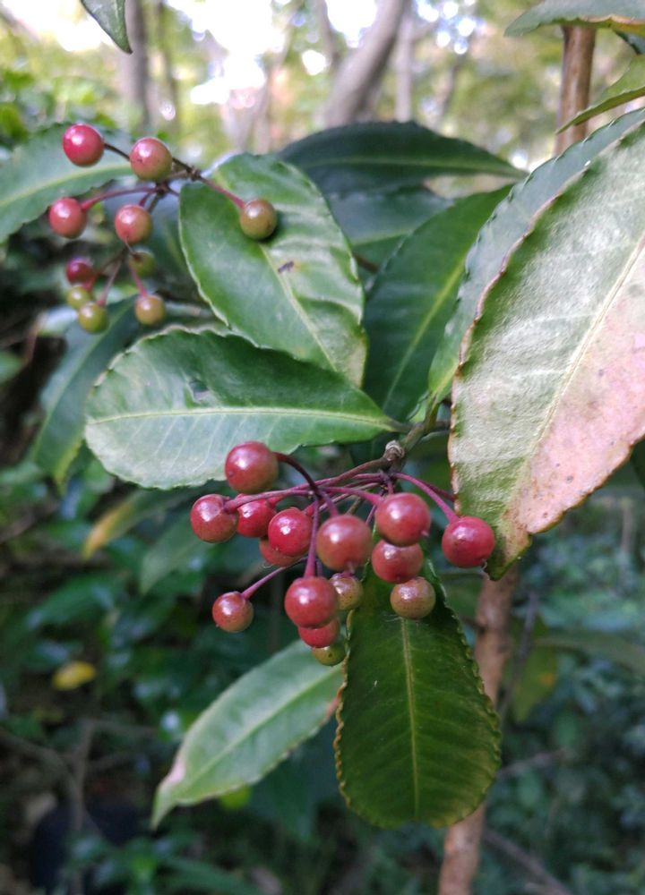 ①万両 ②千両 ③ヤブラン ④シャリンバイ
