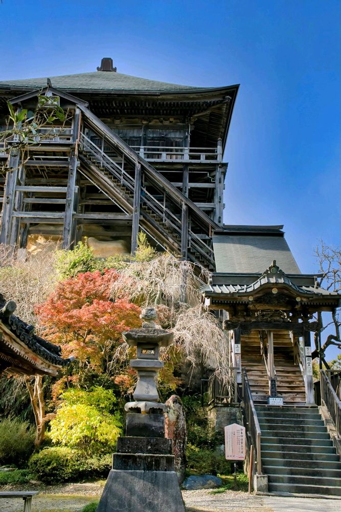 日本で唯一の「四方懸造り」(しほうかけづくり)で建てられており、国の重要文化財。