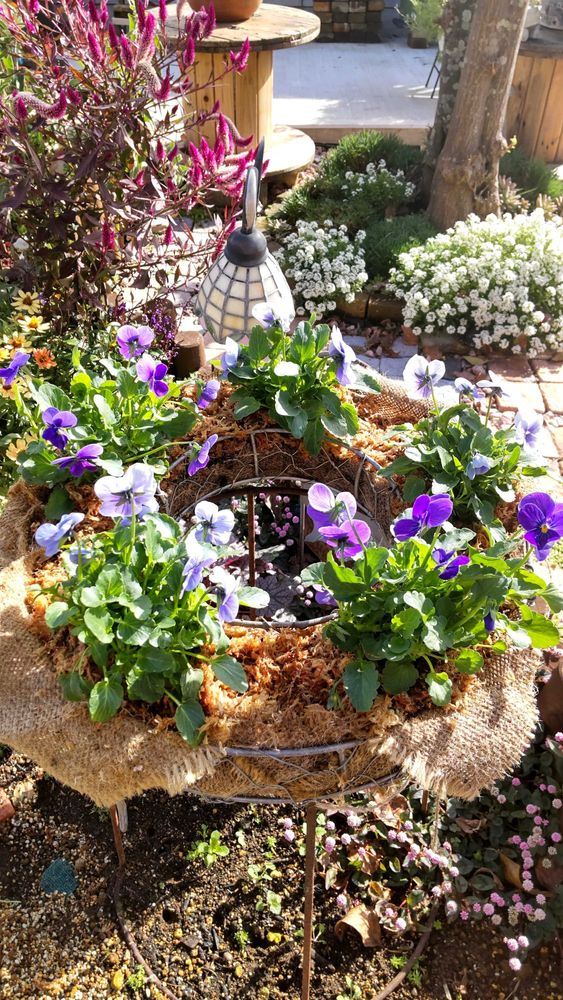 ①ビオラのリースを作りました。初めて株間に水苔を使いました😊