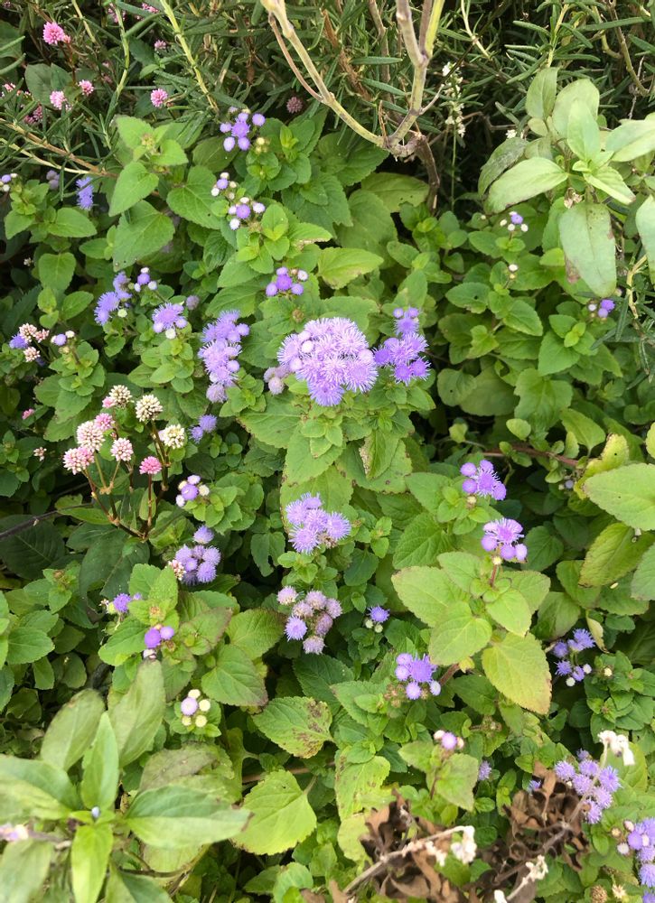 道路沿いの花壇にて、紫色の「アゲラタム」とブルーの「サルビア・アズレア」をパチリ!📸💜💙🌿😊😄🌞✌️
