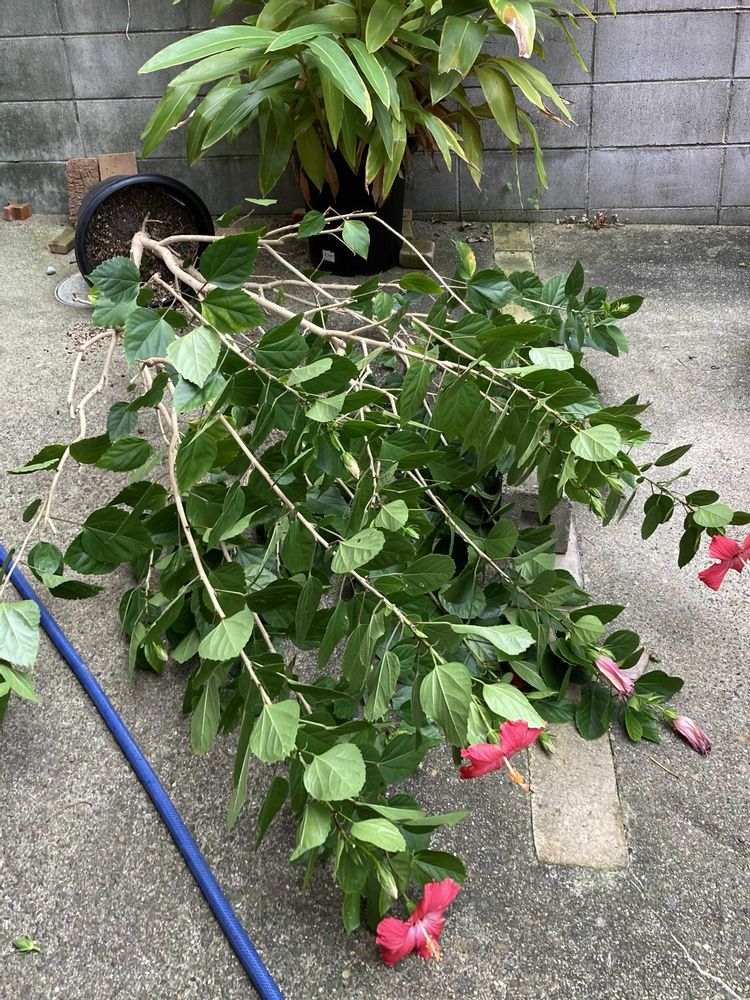 わが家のハイビスカス🌺は、完全に打ちひしがれてます😂