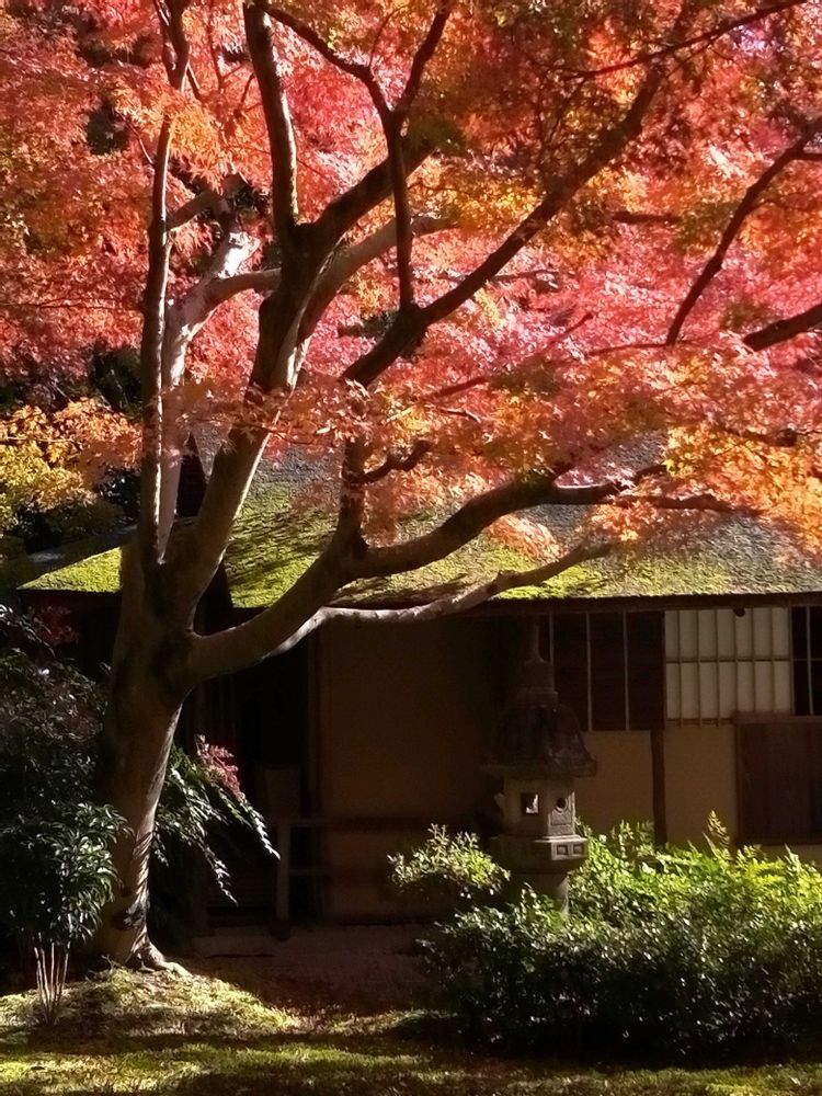 今日の、千里万博公園、この時期だけ公開されるお茶室の紅葉です。