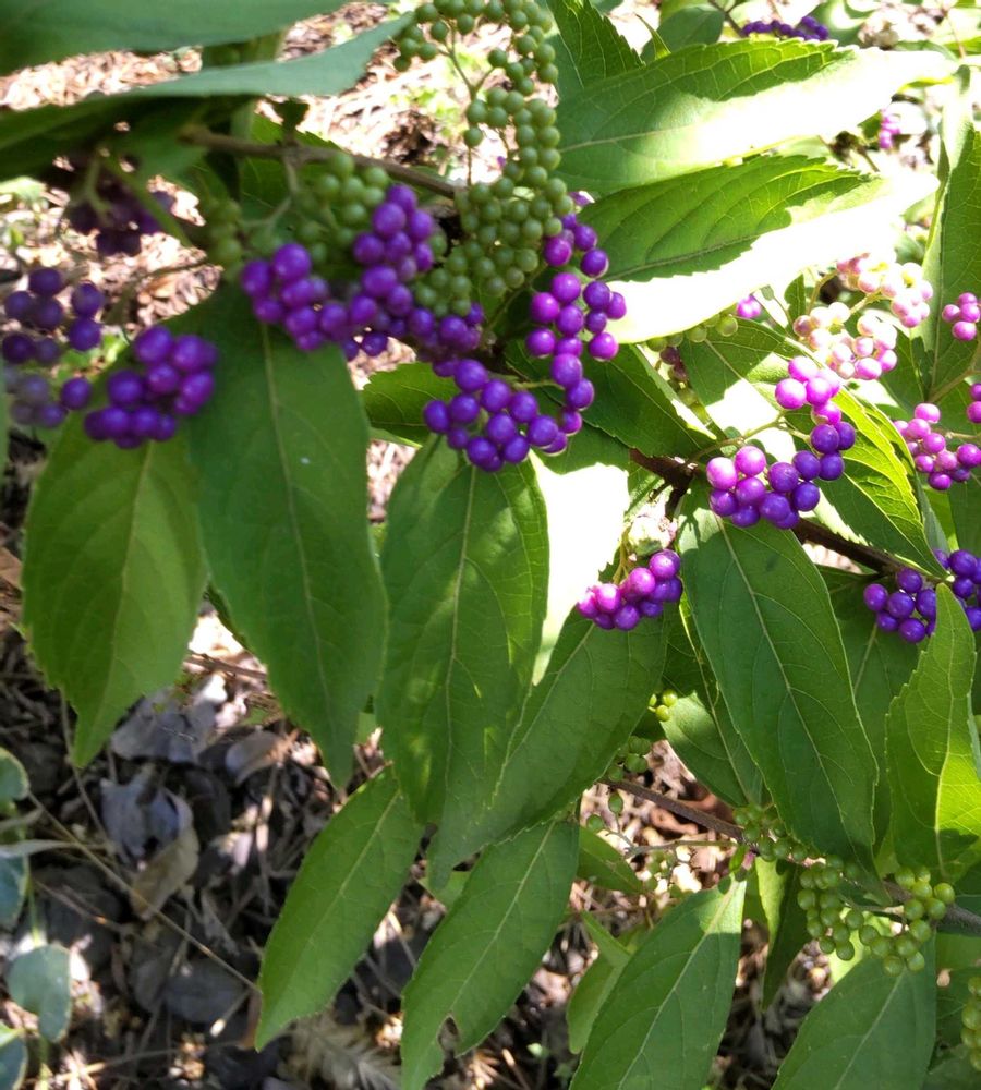 手入れと言っても枝が込みあったり長くなりすぎたら切る位ですよ。たいしたことはしてません😆あまり大きくならず枝が垂れます。この紫の実を見たら自然の色の美しさに感動すると思います😍💜