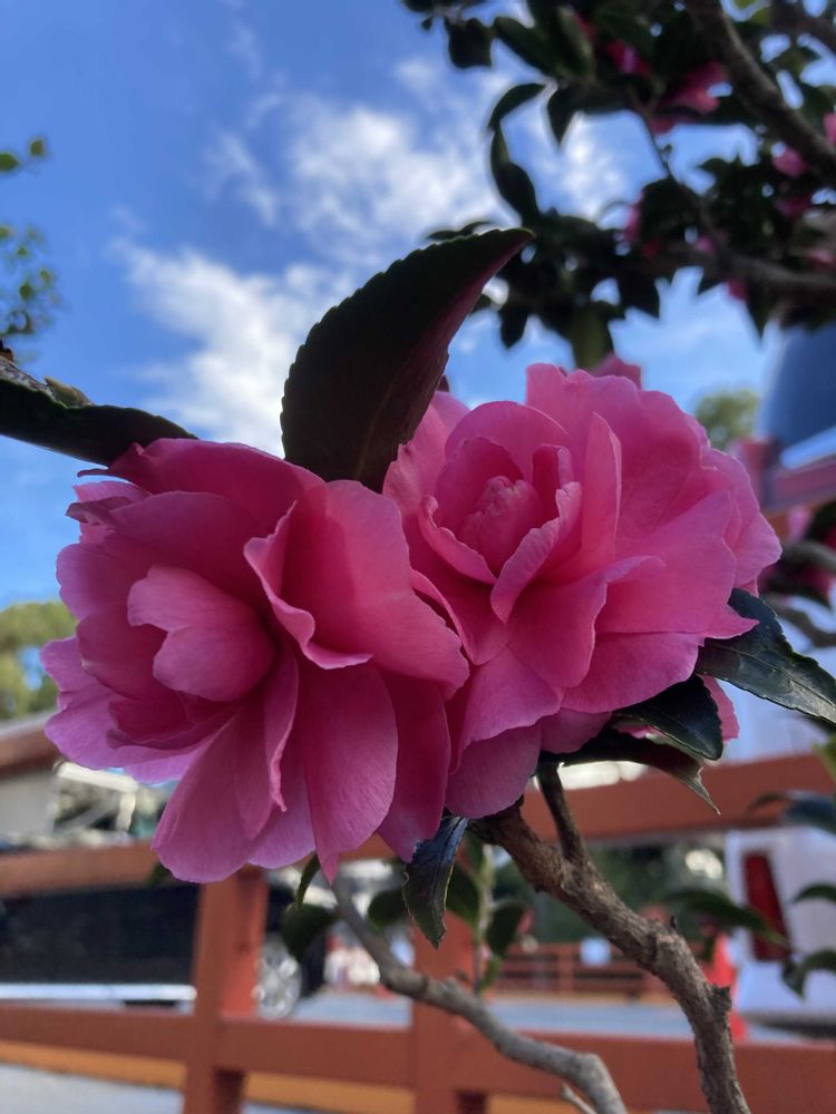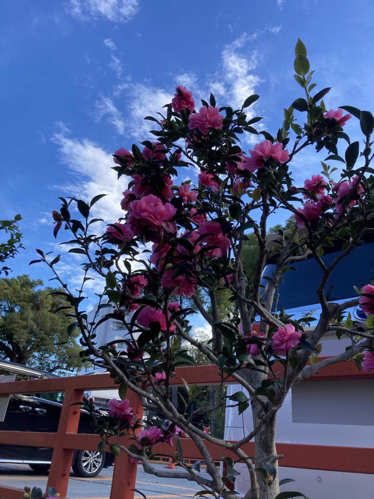 【サザンカ】が青空に綺麗に咲いておりました💞🌿🎶
