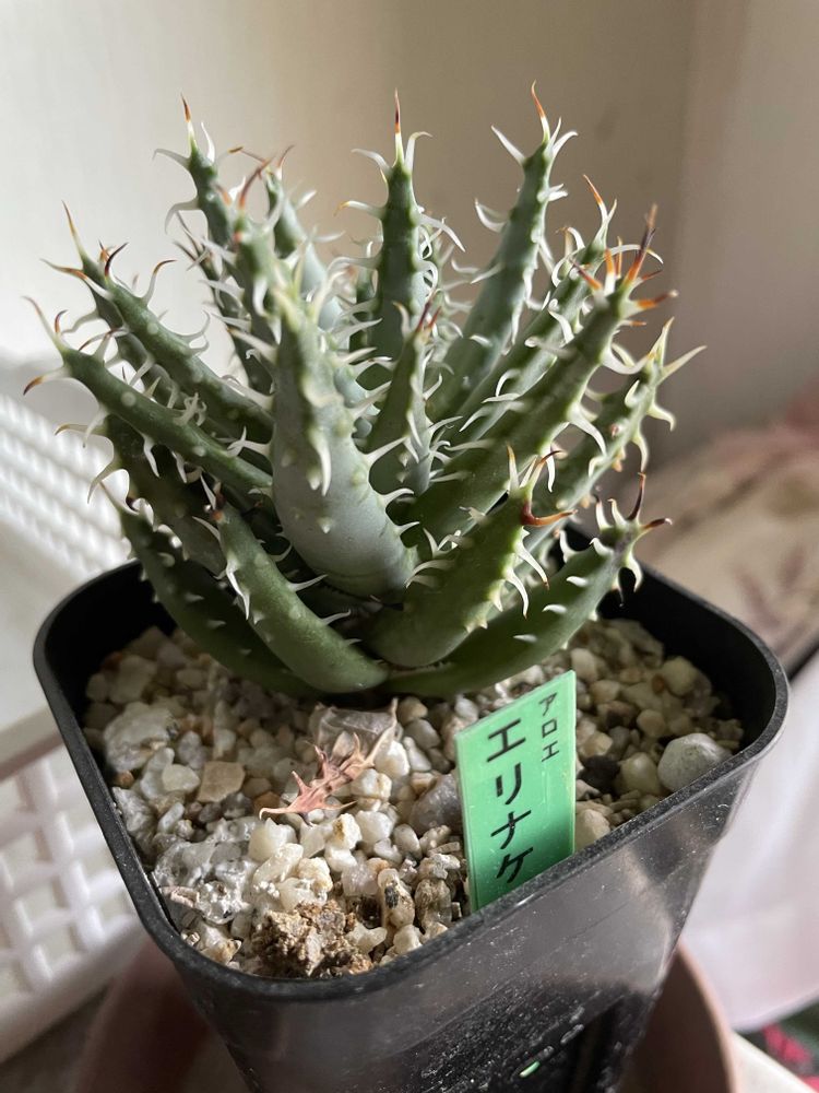 白いトゲを焦がさない様に熱帯果樹の後ろの半日陰で育てています☺️