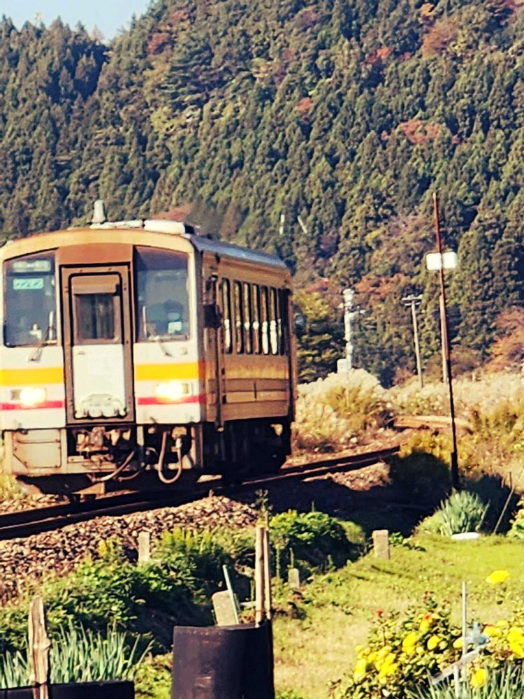 ジーゼル電車に少しずつ紅葉が映えてきました。紅葉見に🍁電車、乗りたいですね。🍂