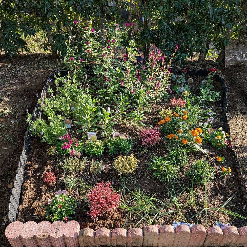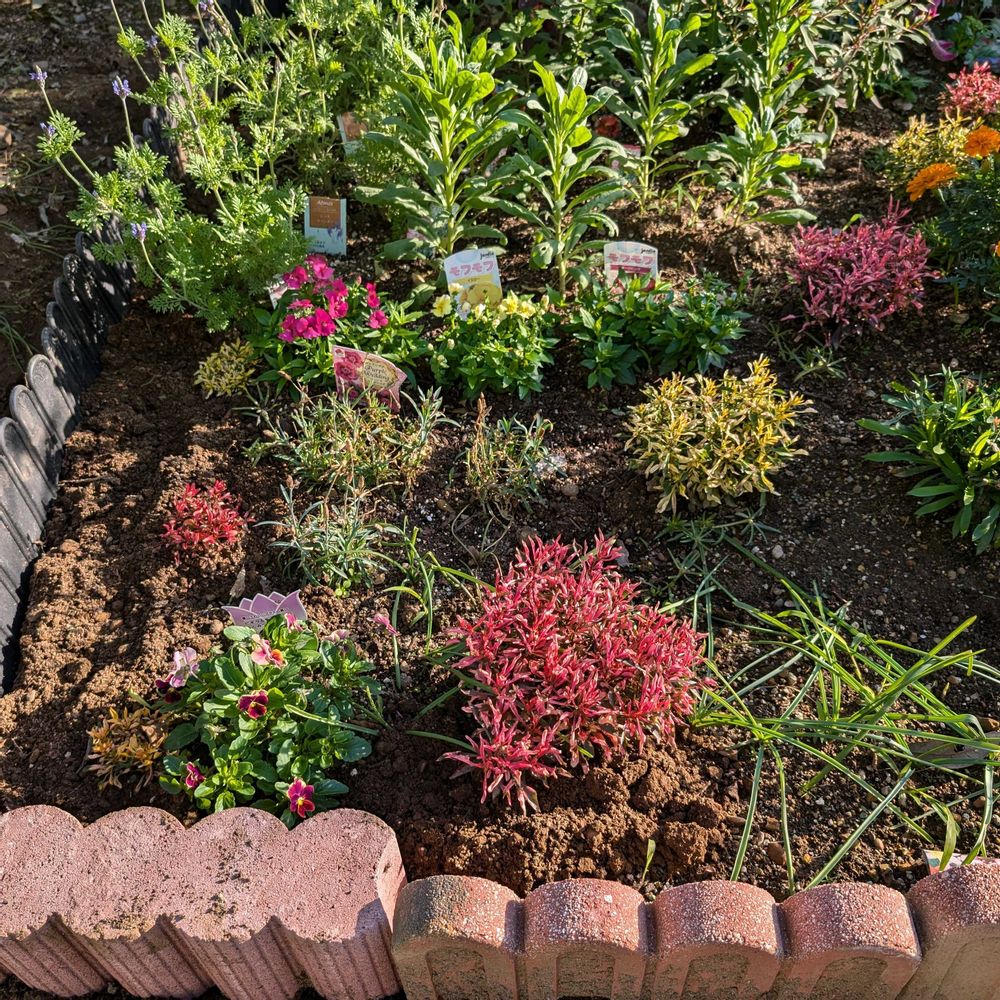 実家のお庭の花壇🏡にたくさんのお花を植えましたね🌷´-🌸