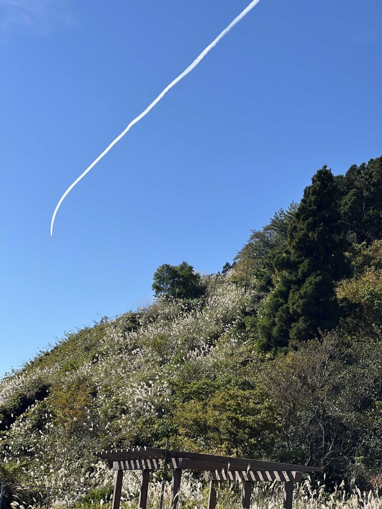 ススキ,ススキ,青空と飛行機雲の投稿画像
