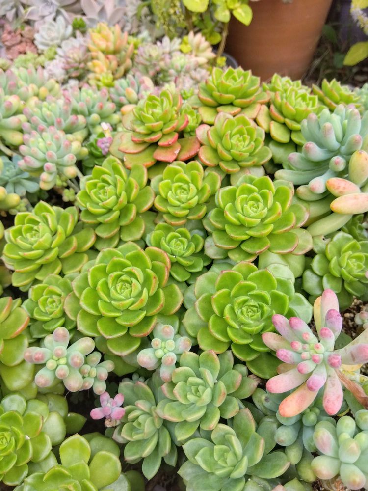 今朝の写真は、ほんのり色付いてきました庭の多肉たちになります🍁