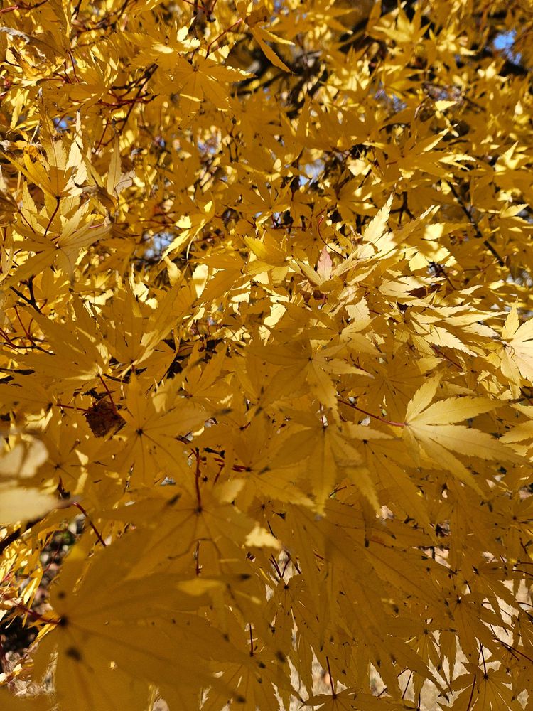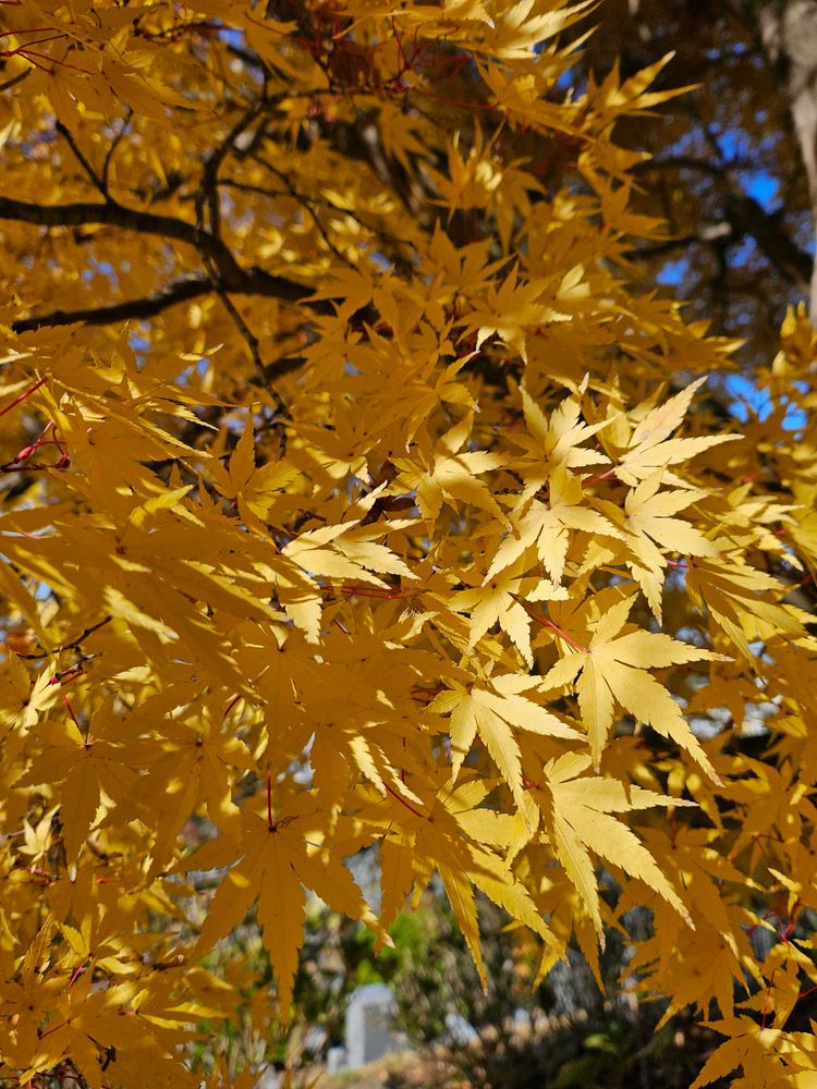 おはようございます。黄色の色づいてるのを見て何もみじ? 綺麗な黄色でした名前は解りません💛💛💛