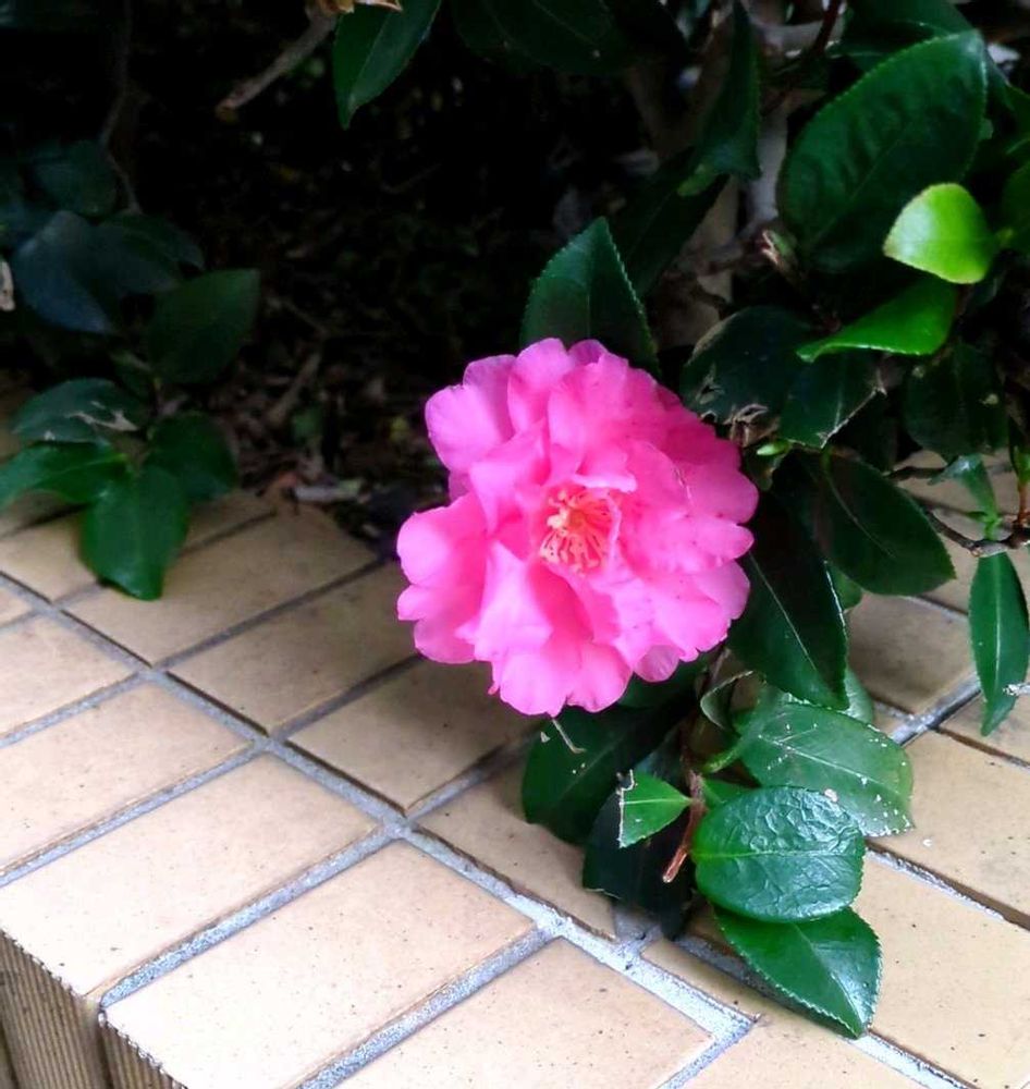 仕事先の隅に1輪の山茶花が人知れず咲いてました💕🌿
