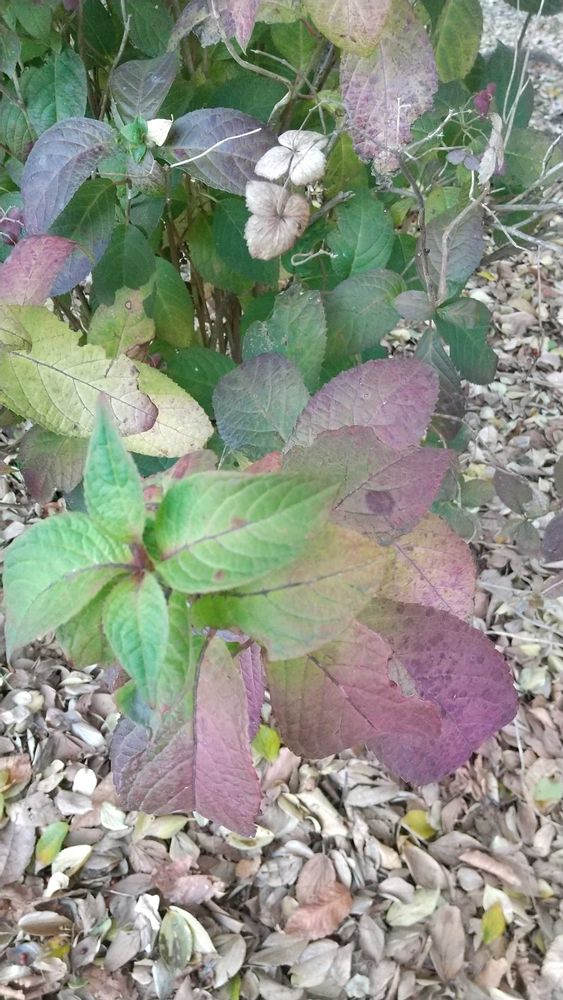 ③このアジサイは葉っぱがとても魅力的なグラデーションです✨👀💚💜🧡