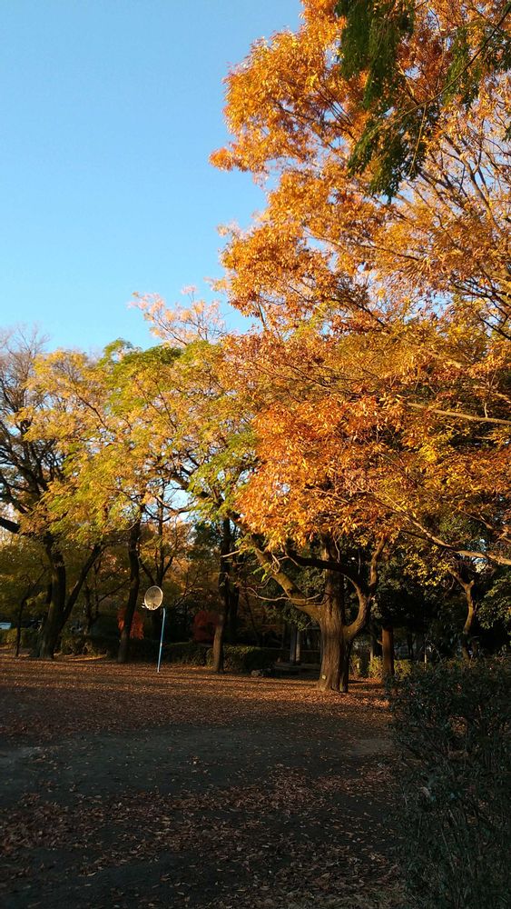 イチョウもセンダンもコナラもゆっくり葉の色を変え、落としています💚💛🧡🤎