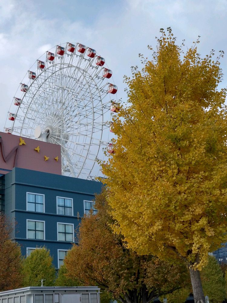 ❺は商業施設の観覧車🎡とイチョウの木🟡🌳