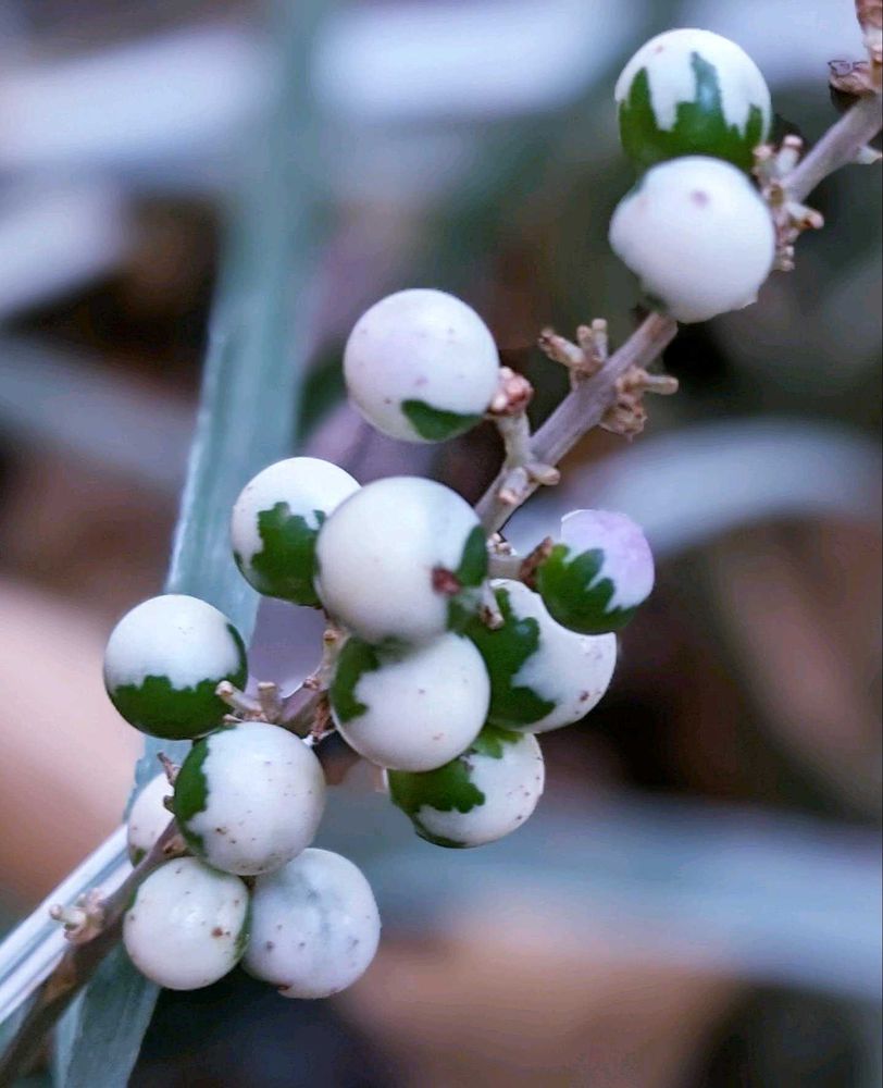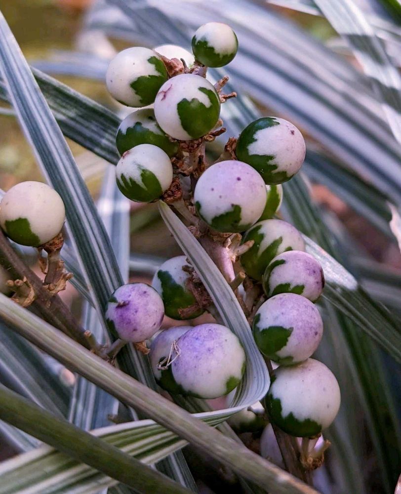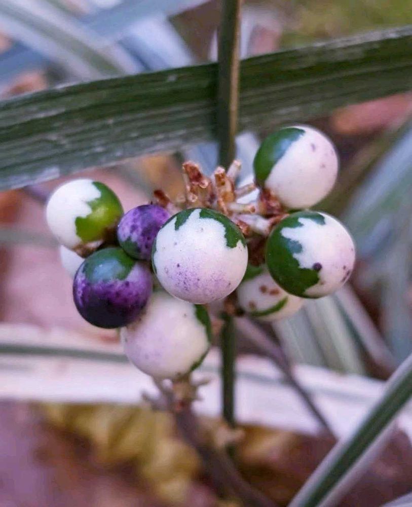 この子はシルバードラゴンと言う斑入りヤブランの実で最初はマーブル柄で次第に紫に⚪🟢🟣