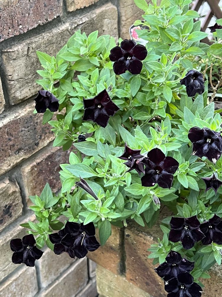 こんにちは☺️PEKO地方快晴☀️ペチニュア黒之瀬戸🖤夏の暑さにも負けずまだ咲いてます🖤もしかして冬越し出来るかも🎶