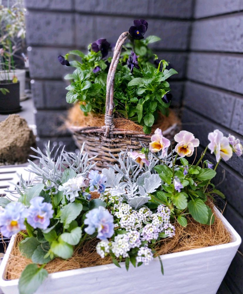 パンジー、ビオラの寄植え🩵