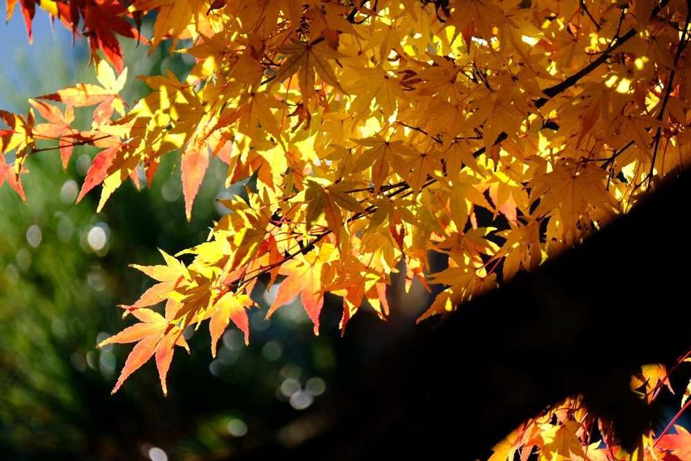 朝日を浴びた紅葉は、黄金に光撮らずにはいられないです😂🎶🎶