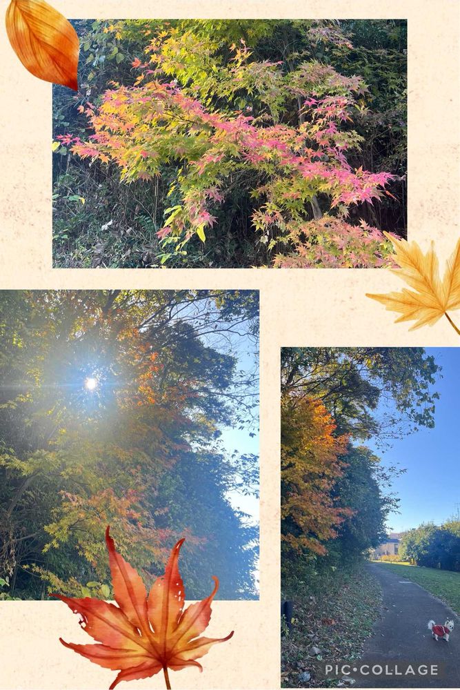 1️⃣いつものお散歩コースで、もみじ🍁の葉が、全体が紅葉していて綺麗〜✨✨💓とpicを撮ってる横で、なぜ止まる⁉️💢と怒って引っ張るビビ💦