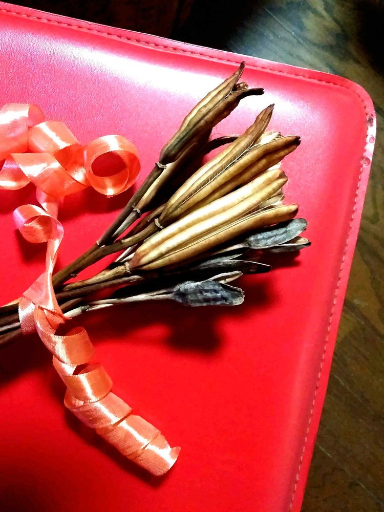 私も,タネが終わったユリの鞘,玄関に飾ってますが、漂白して白くなる事は知りませんでした😅そのままなので、茶色ですが、漂白すると真っ白になるんですね😆