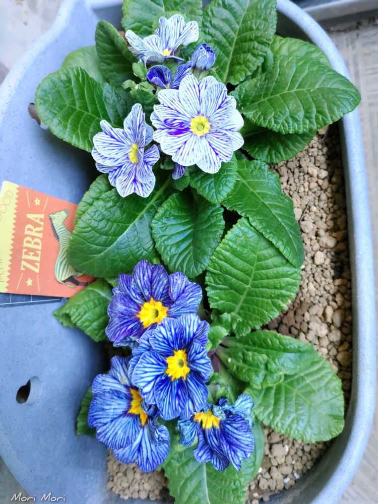 プリムラジュリアン ゼブラが咲いています💙🩵