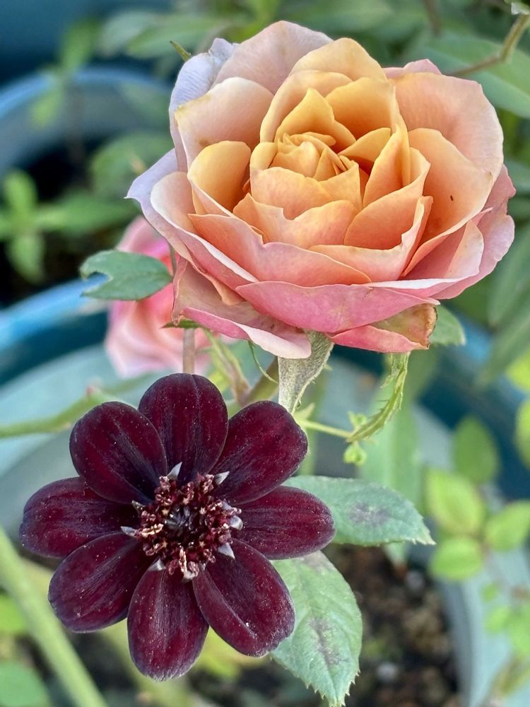 一昨日の砂嵐シフトで、お隣にチョコレートコスモスの鉢を寄せました