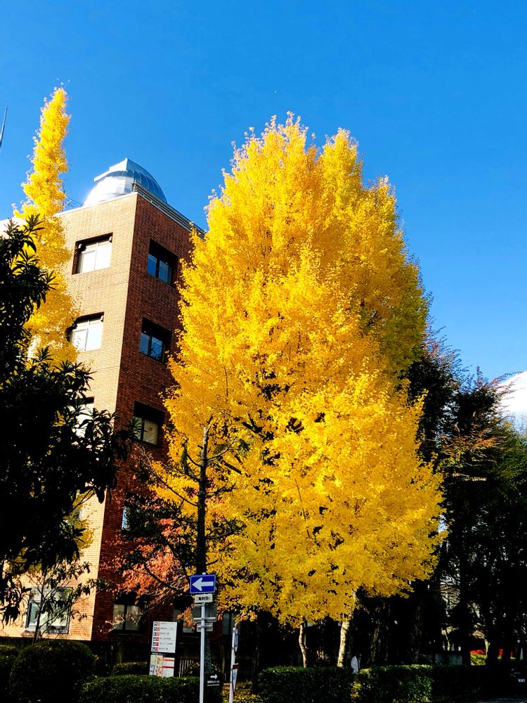 見頃になった朝日のあたる銀杏です