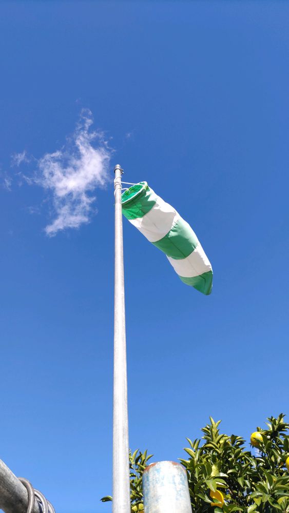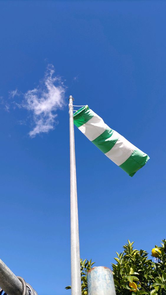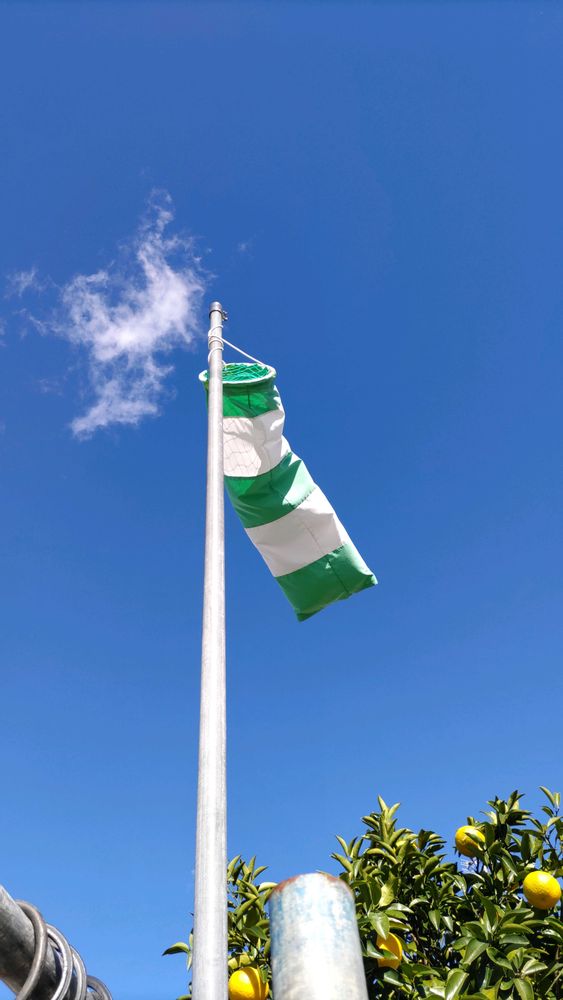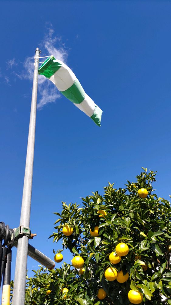 『秋風に揺れる吹き流しを見上げる柑橘類』