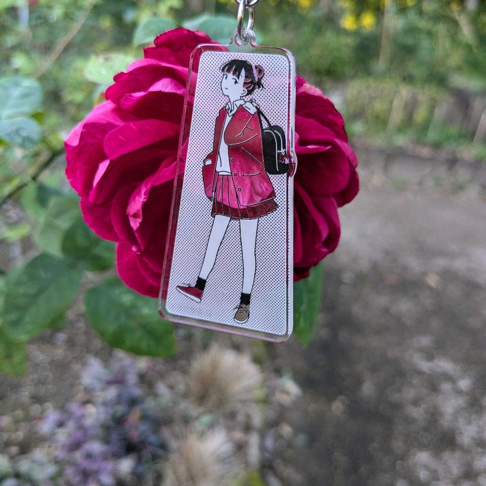 バラと、ももこさん、リリーちゃんです😄あらためて、お散歩ちゃんキーホルダー、いいPic撮るの、難しい〜と、想う、このごろです😅