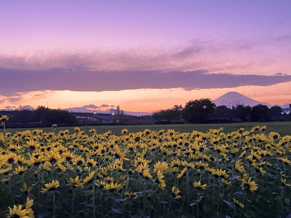 夕焼けと富士山が見られる日を見計らって行ってみたら、タイミング良くヒマワリも満開でした🌻