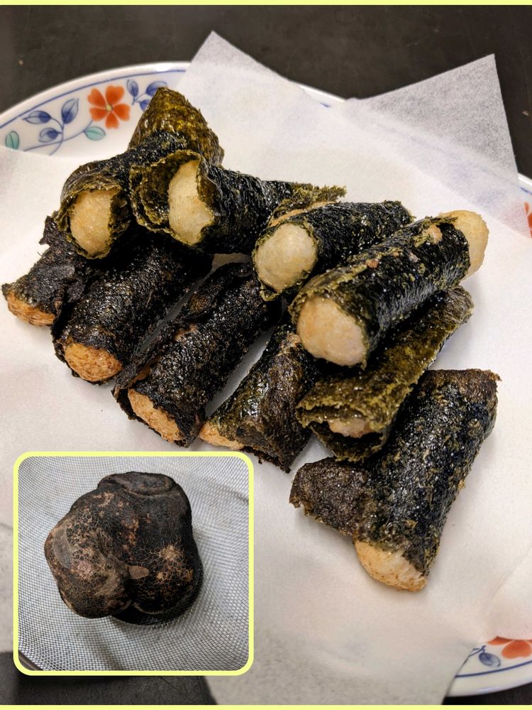ちなみに、丸いもの1品ですが、すりおろして、海苔で巻いて油で揚げ塩をフッた物で、ビール🍺のおつまみに最高です😆