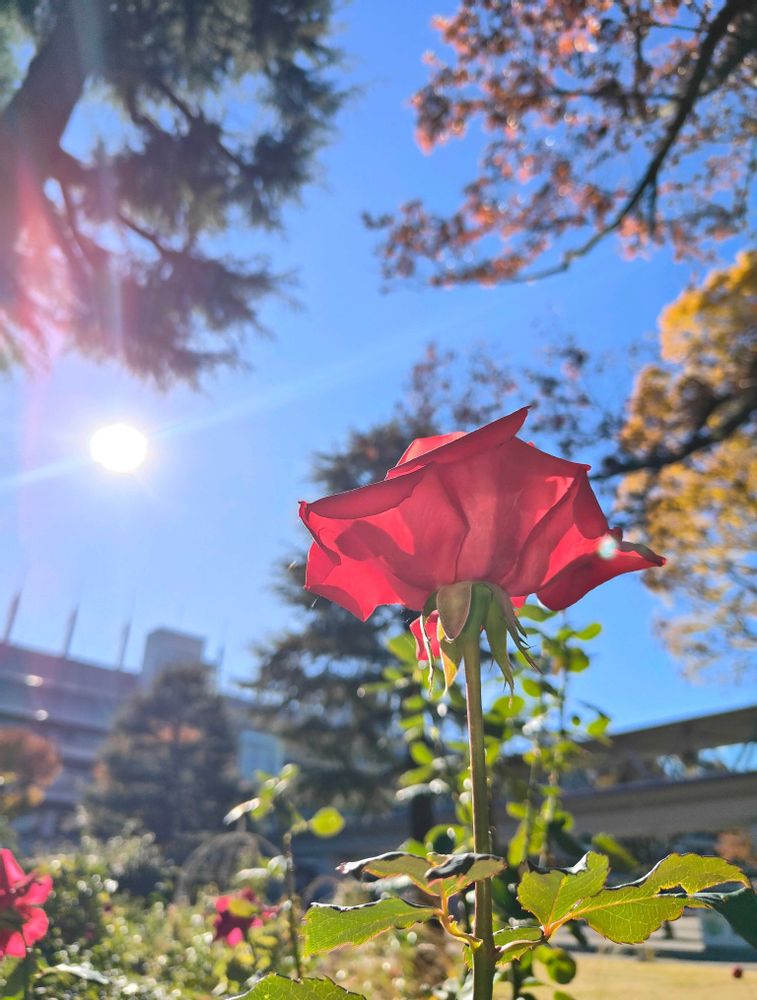 太陽に負けないくらい眩しい赤です。