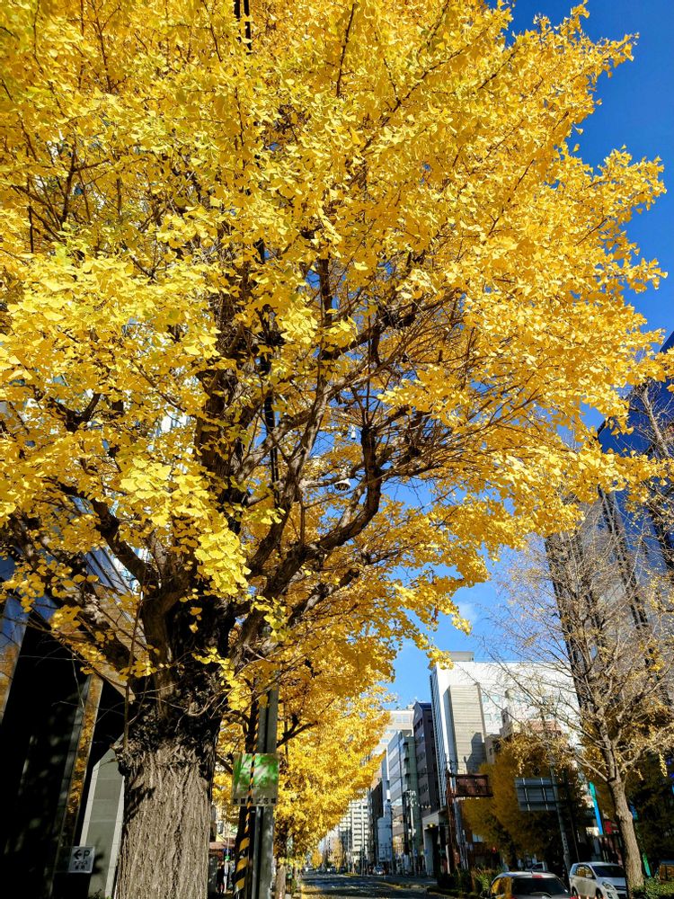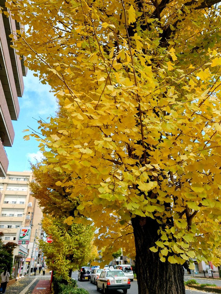 今日の午前、市内を散歩途中に見かけたイチョウ。
