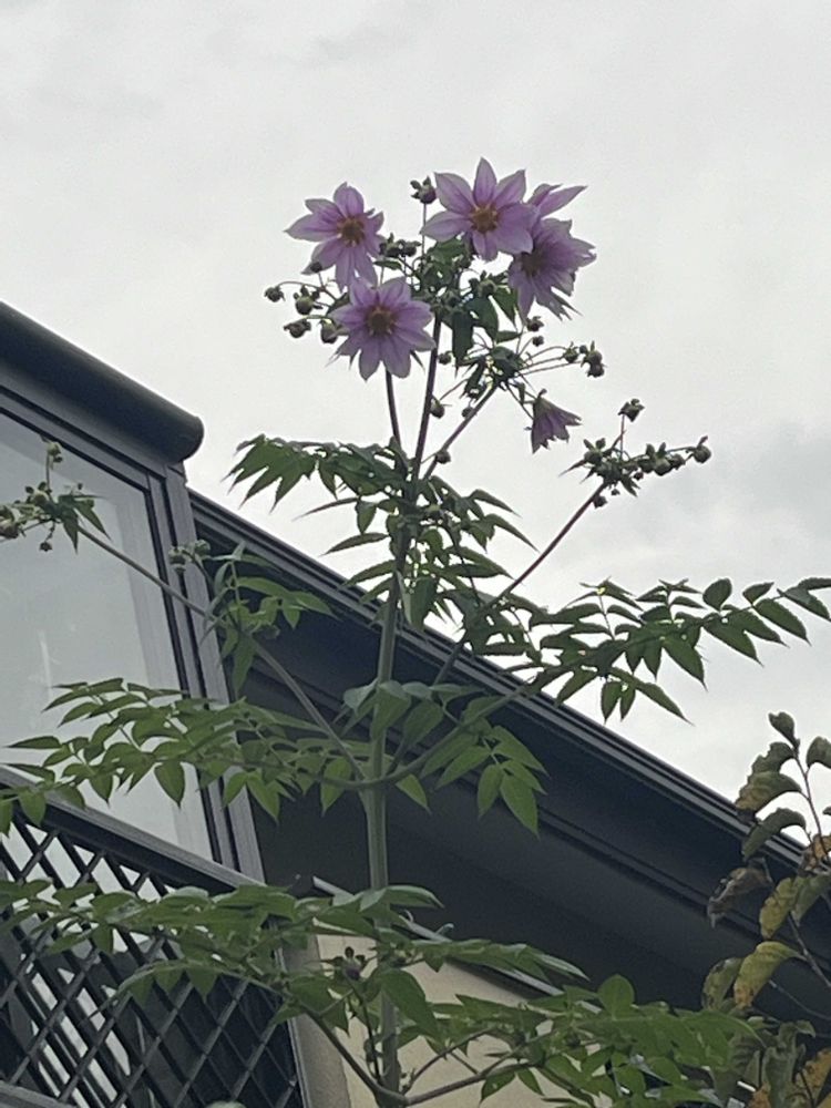11月28日まで空に向かって咲いていた皇帝ダリアが、大風🌪️が吹き荒れて、悲惨な姿になってしまいました。😭😭😭