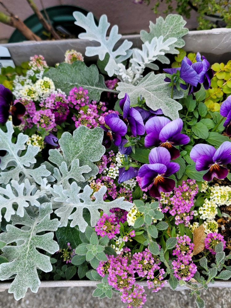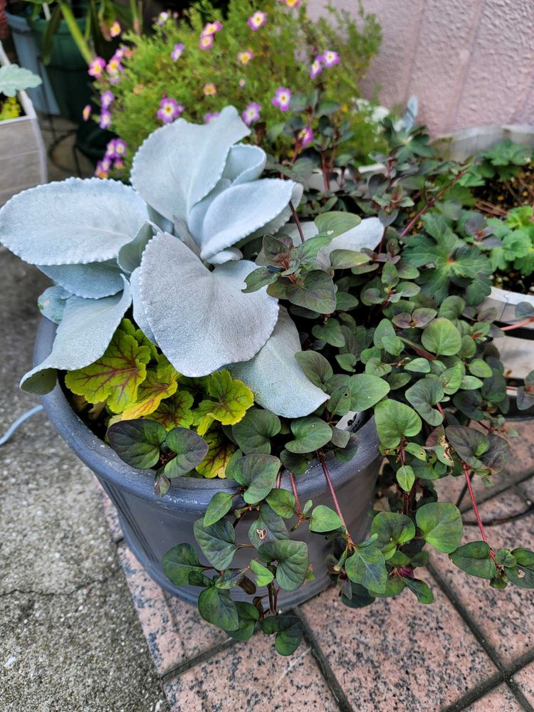 ディコンドラやビデンスなど、耐寒性のないものも、寄せ植えに植えられて綺麗ですね😍