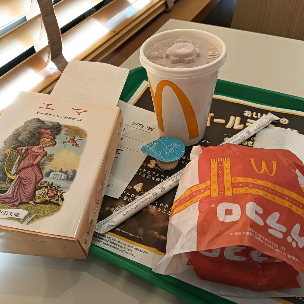 オースティンの エマ 読みながら。途中のマックでグラコロ食べた👍
