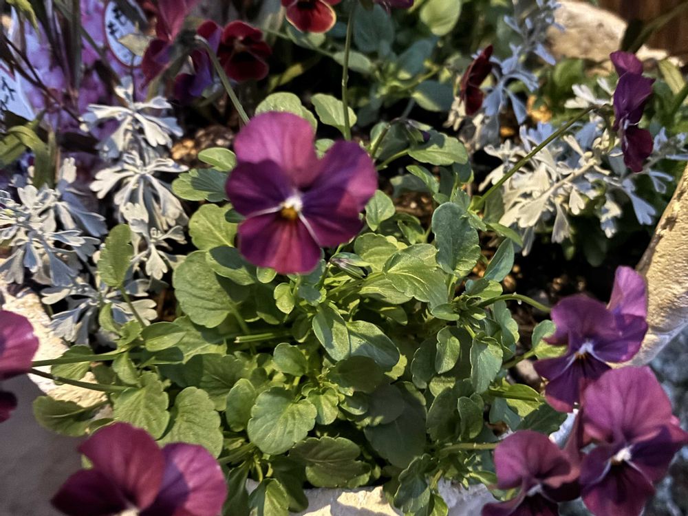先日寄せ植えを教えて頂いたところでパンジービオラが入荷と知らせを聞き、お迎えした ドラキュラ🧛クレール.ドゥ.リュンヌ❣️