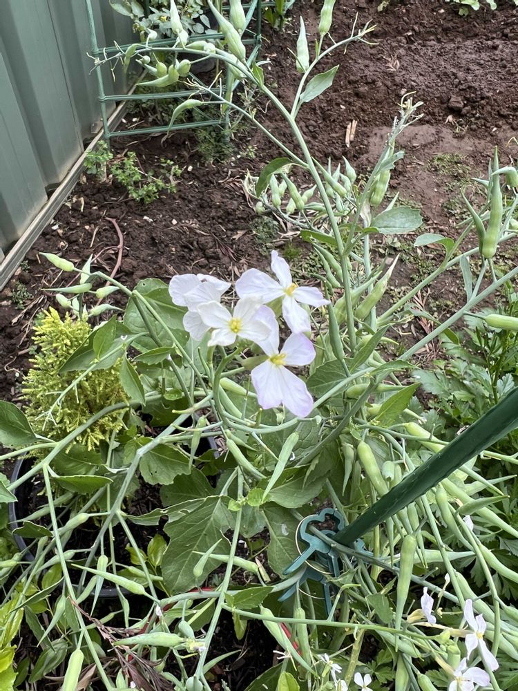オーストラリアだとダイコンの種は今頃採れるんですね! 日本だと5-6月だけど😉 ダイコンの若い莢食べられるんですよ!あんまり美味しくはないですが・・😅