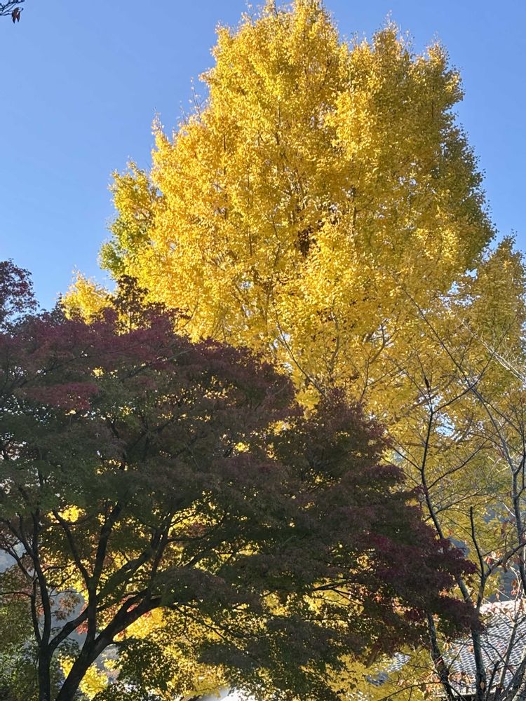 イチョウ🍂と、真っ赤な紅葉🍁素敵な雰囲気やね🎵