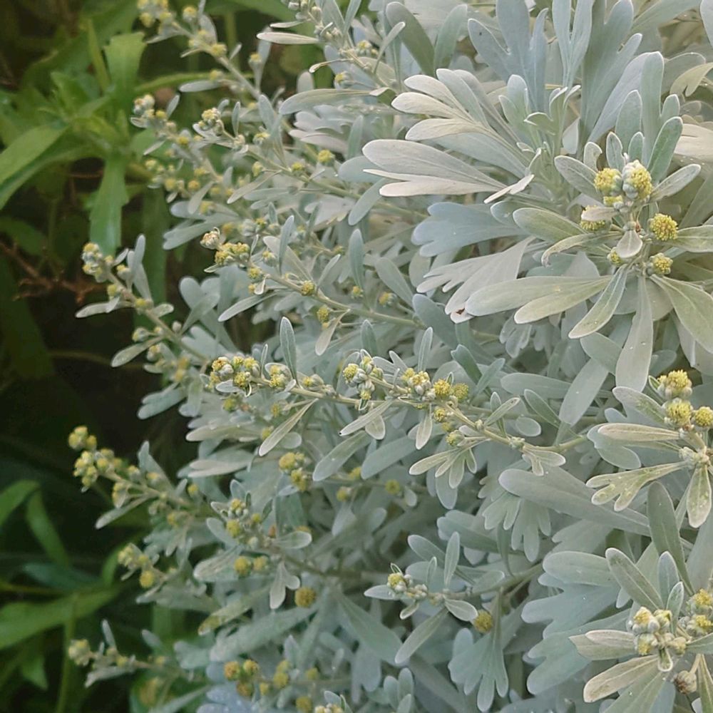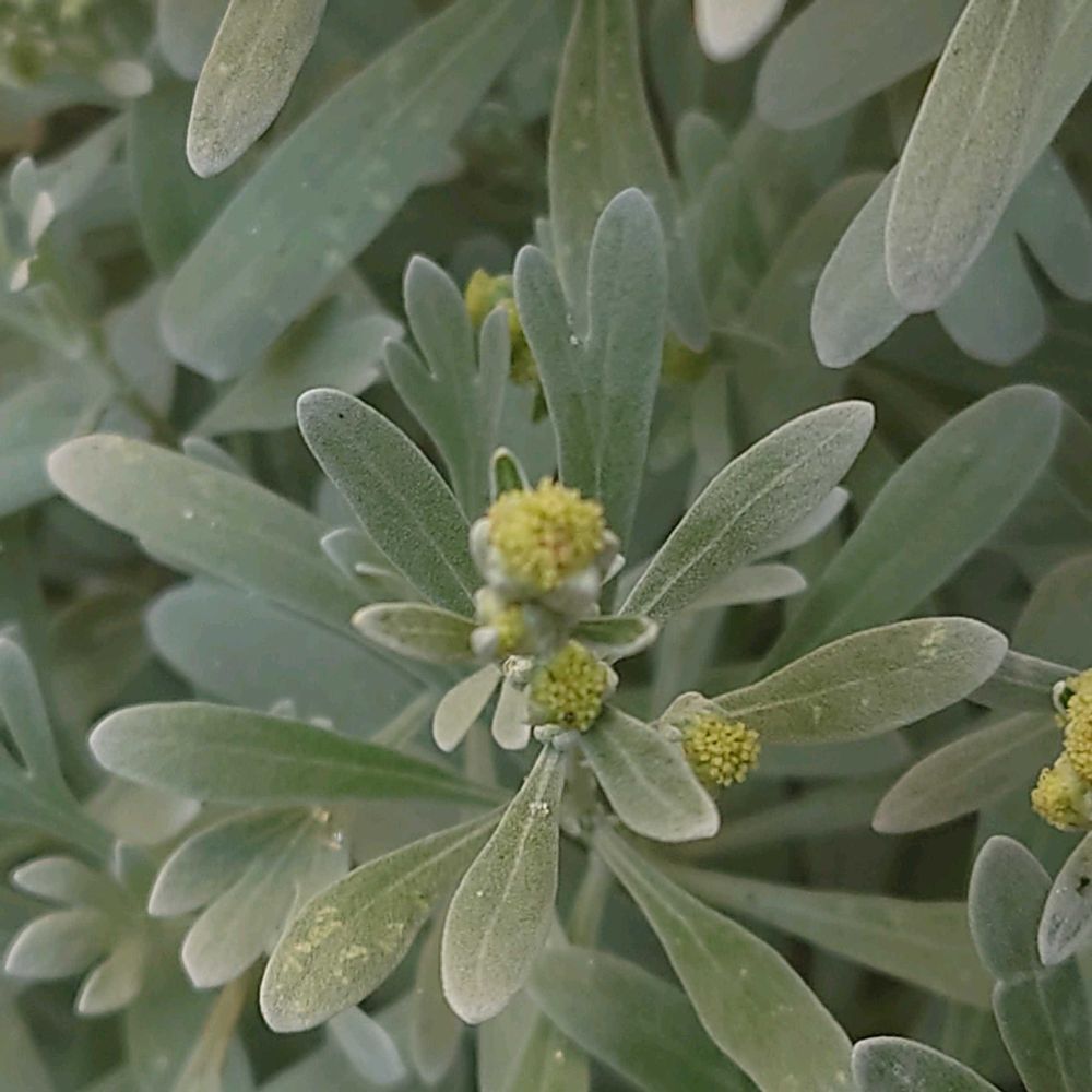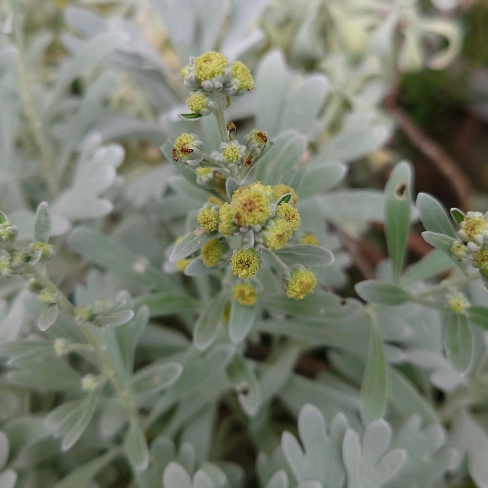 シルバーの葉っぱが綺麗なんですが、花が咲いたけど地味〜グーグルさんには、あまり鑑賞価値ナシなんて書かれてます〜ヒドくない???🤭✨