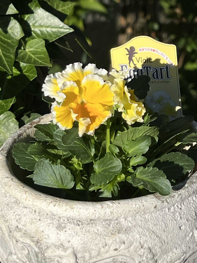 おはようございます☺️PEKO地方晴れ☀️ビオラ エッグタルト🥚黄身の多いコ💛白身の多いコ🤍皆さんはどちらが好みかな❓