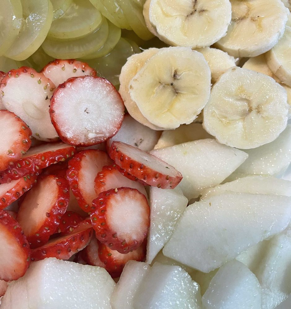 ミルクレープの断面がきれい🍓🍌🍐🍇🤍