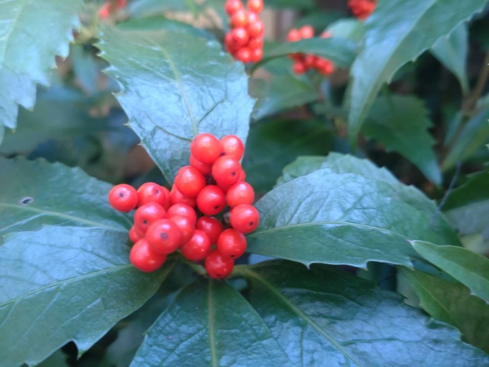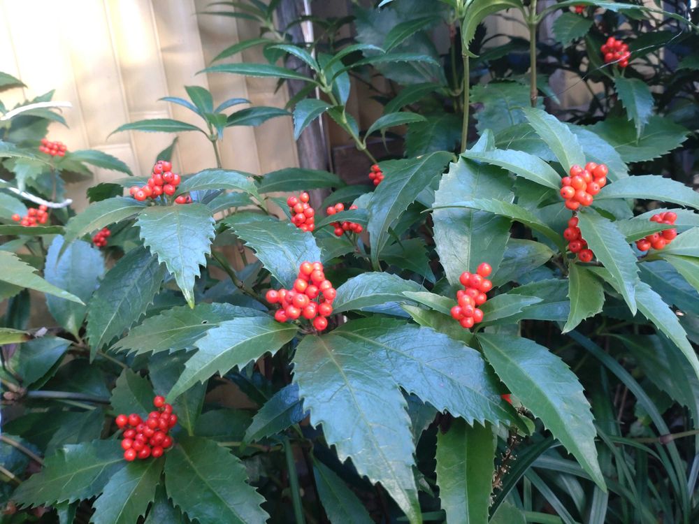 昔お正月のお花に買ったセンリョウの実を鉢に蒔いて目が出たのに夏場すっかり忘れて鉢の草と一緒に全部抜いてしまった事をこの季節思い出します😢