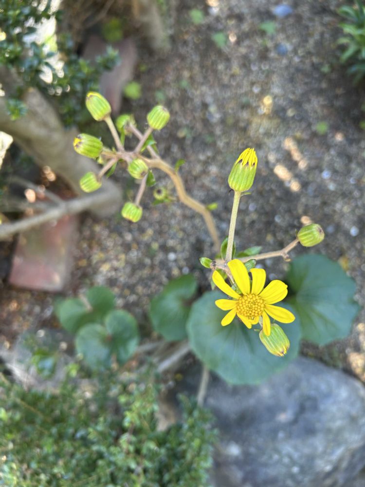 数十年ほったらかしの地植えのツワブキ。ようやく開花し始めました。