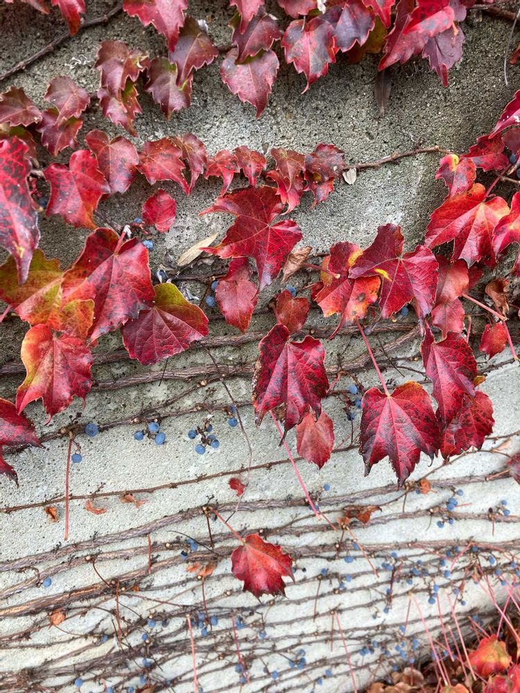 散歩の途中、近所の庭の蔓が紅葉して、とてもきれいです