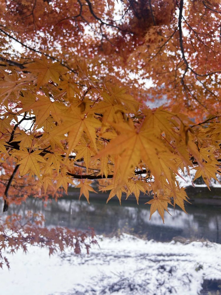 紅葉🍁に雪が❄️降って、また違った美しさでした✨