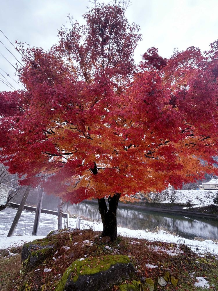 紅葉🍁と雪のコラボ❄️美しいです✨