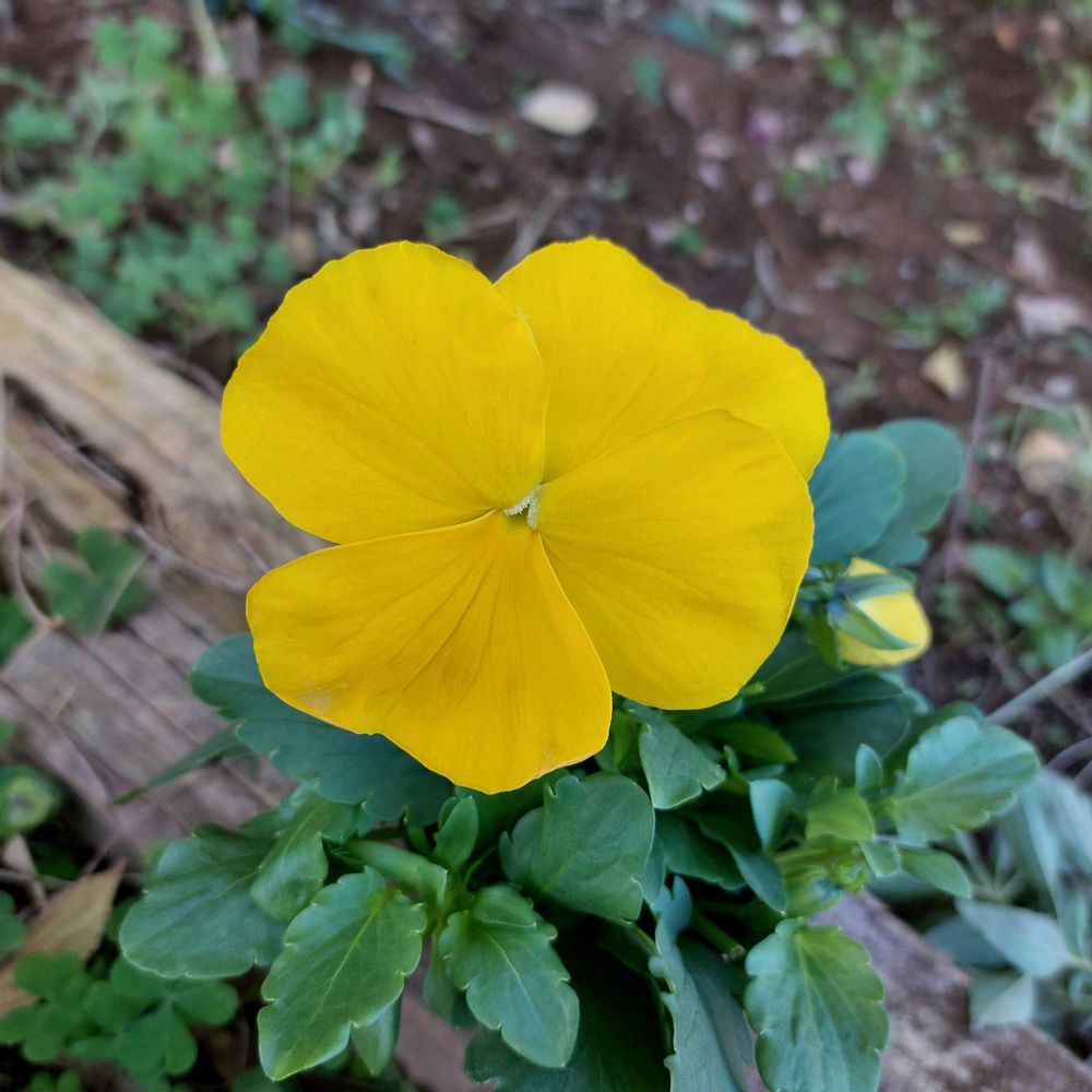 黄色一色のパンジーは、地植えにします🟡🟡