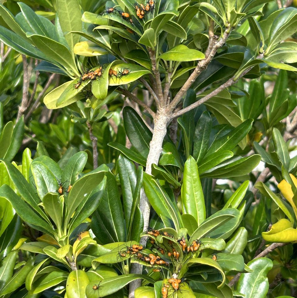 そのトベラに沢山のフタスジハリカメムシが今年も大発生💦毎日チェックし駆除してます😅
