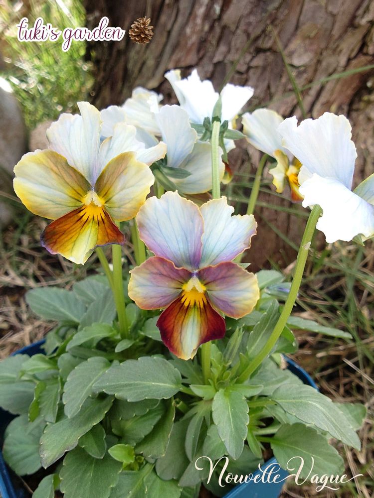 本日の📷投稿は、大好きなビオラ『ヌーヴェルヴァーグ』(1〜4枚目📷)と、少し前に家族が撮った月ちゃん🌛(5枚目📷)